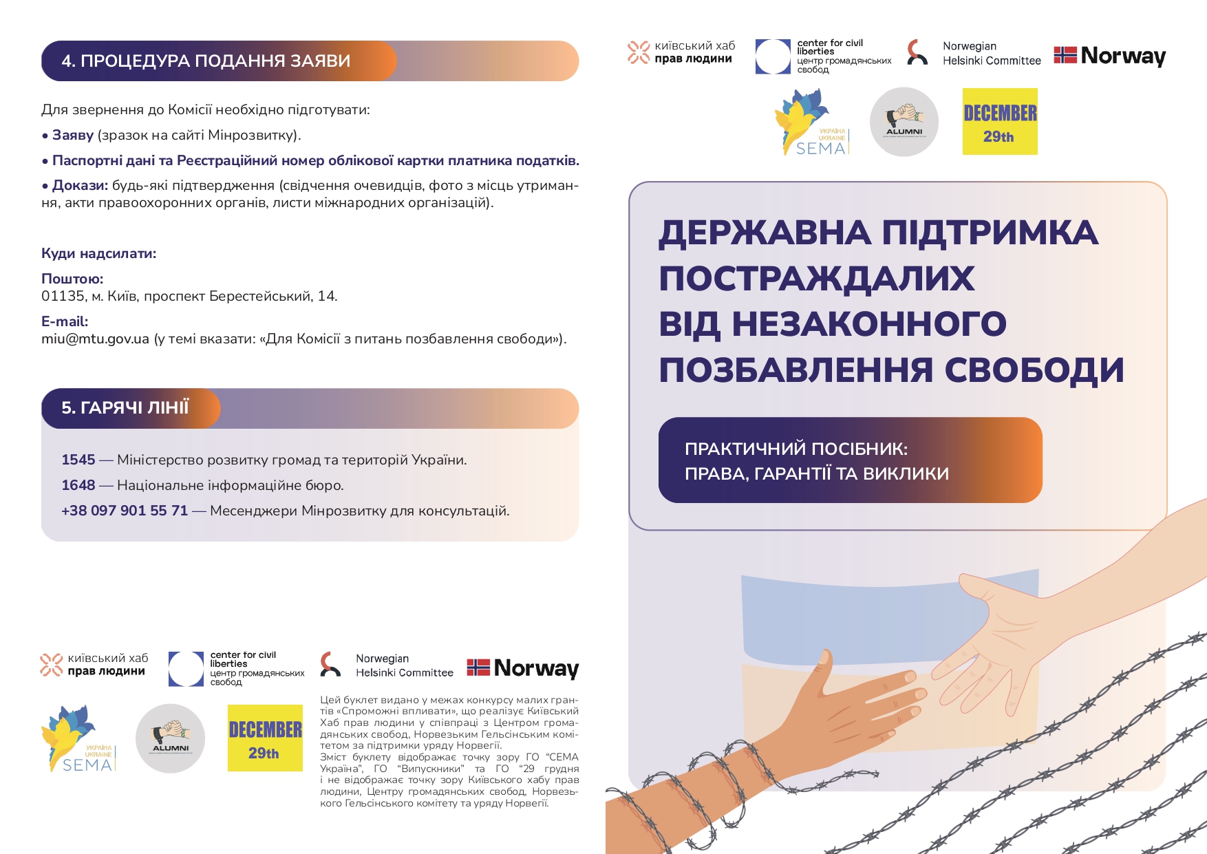 «Пам’ятка особам, звільненим після незаконного позбавлення свободи»