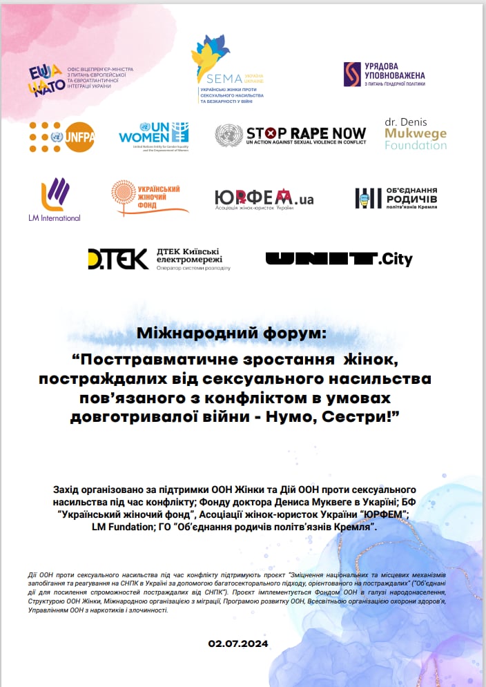 2 липня в Києві відбувся Міжнародний форум, «Посттравматичне зростання жінок, постраждалих від сексуального насильства, повʼязаного з конфліктом в умовах довготривалої війни – Нумо, Сестри!»,