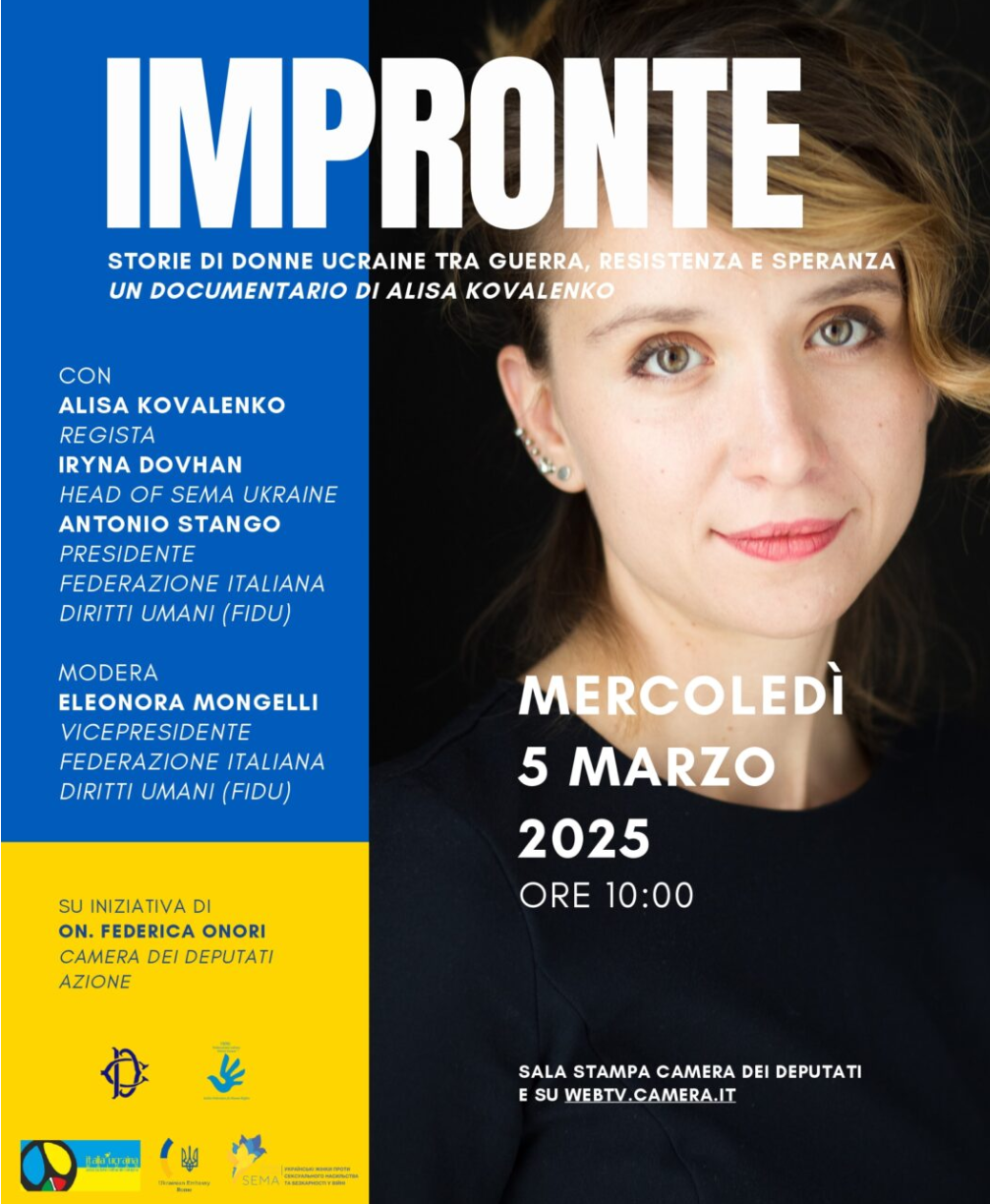 5 березня 2025 року в Римі у прес-залі Палати депутатів Via della Missione 4, Rome о 10.00 відбудеться пресконференція - презентація документального фільму «Сліди» Аліси Коваленко.