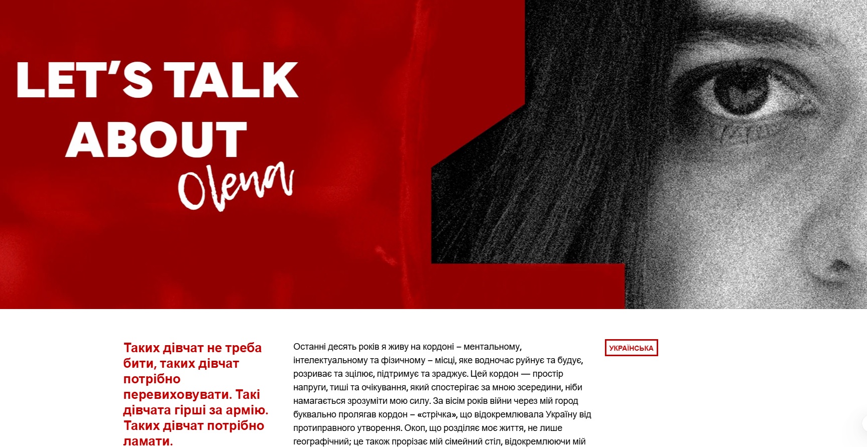 Історія Олени Апчел увійшла в цикл пережитих історій жінок з різних країн SEMA Network.