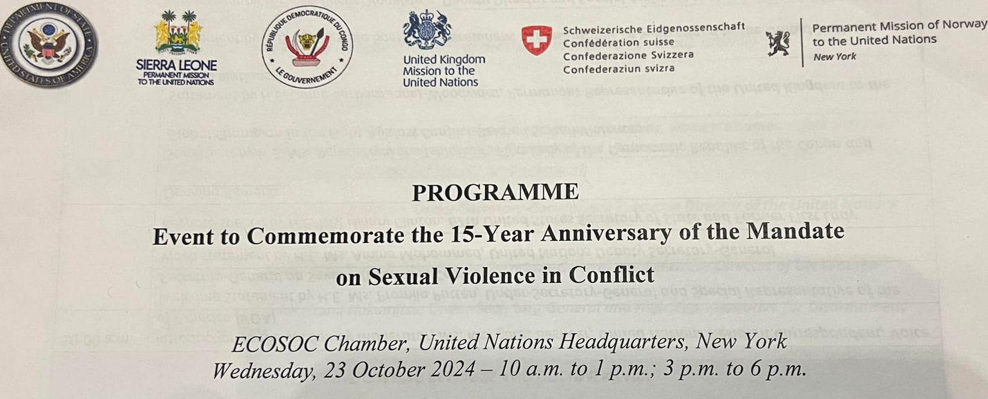 23 жовтня в штаб квартирі ООН в Нью Йорку відбулися спеціальні слухання, присвячені 15-річчу прийняття Радою Безпеки ООН Резолюції 1888, яка наголосила на тому, що сексуальне насильство в конфліктах є злочином.