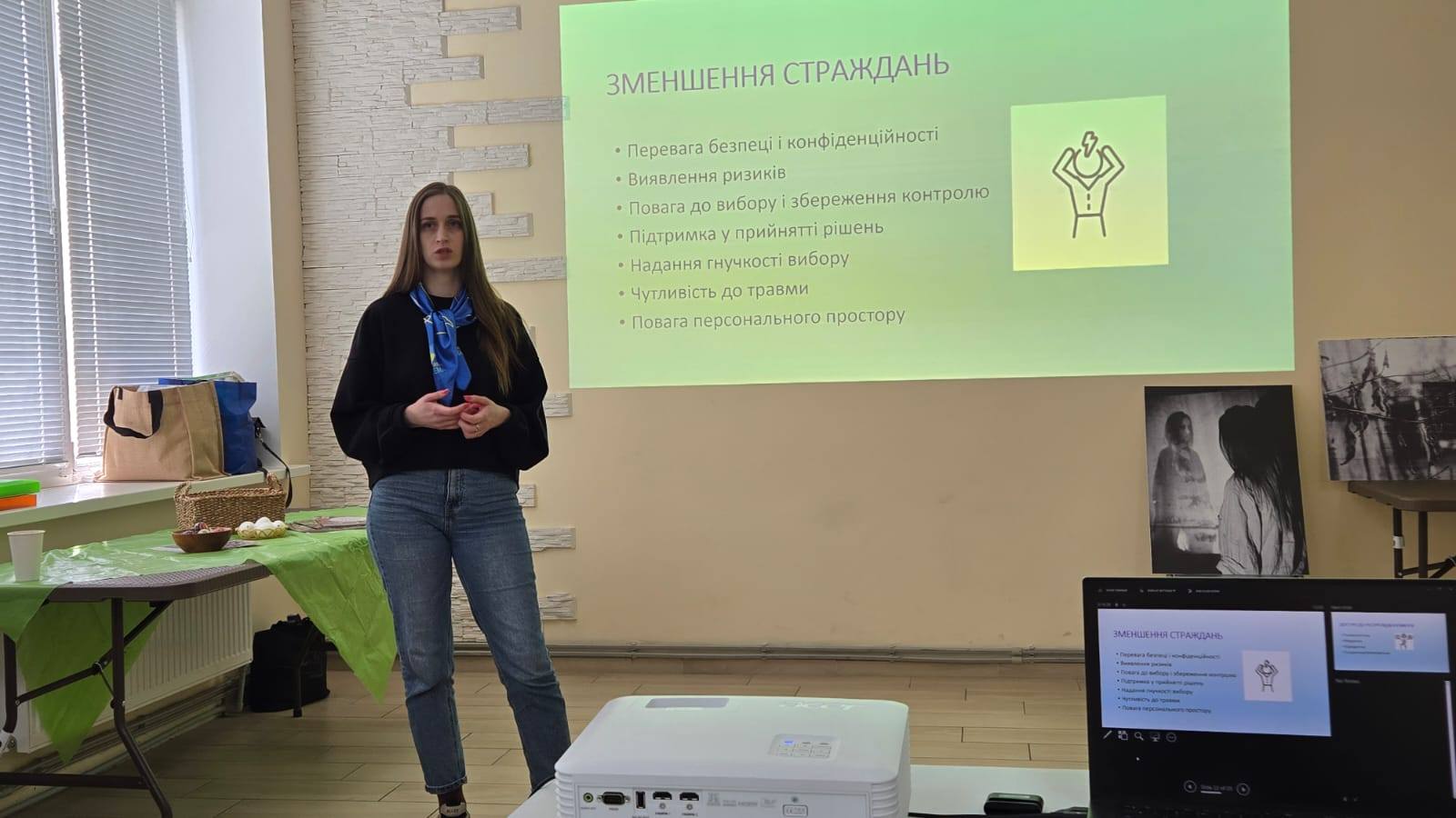 Була представлена фотовиставка робіт Дар'ї Зименко, які уособлюють творчу трансформацію її травматичного досвіду пережитого.