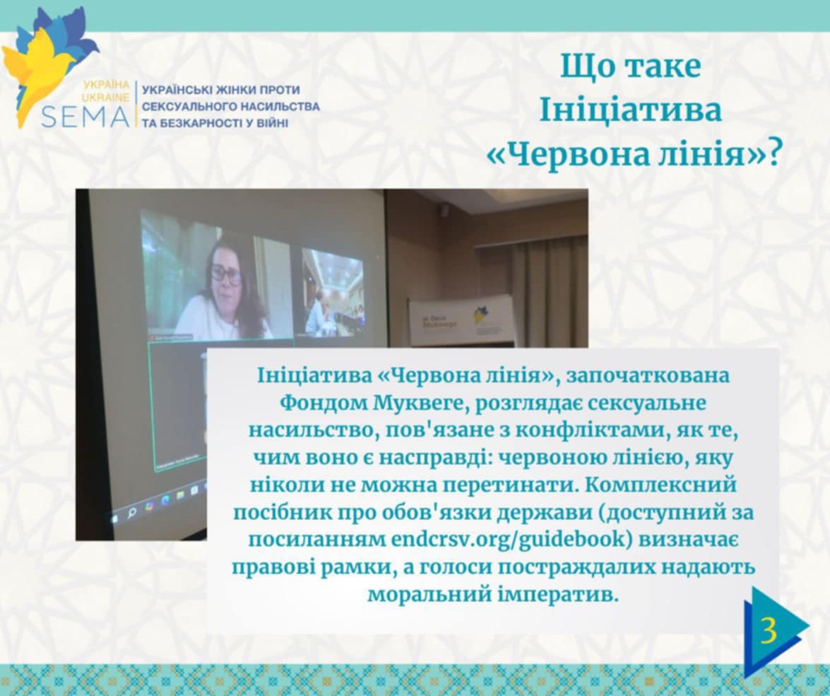 Чому це важливо? Ініціатива «Червона лінія», започаткована Фондом Муквеге, розглядає сексуальне насильство, пов'язане з конфліктами, як абсолютну межу, яку не можна переходити. У посібнику про державні обов’язки доступному за посиланням: http://endcrsv.org/guidebook викладені правові рамки, а свідчення постраждалих додають моральний аргумент, підкреслюючи необхідність боротьби з таким явищем.