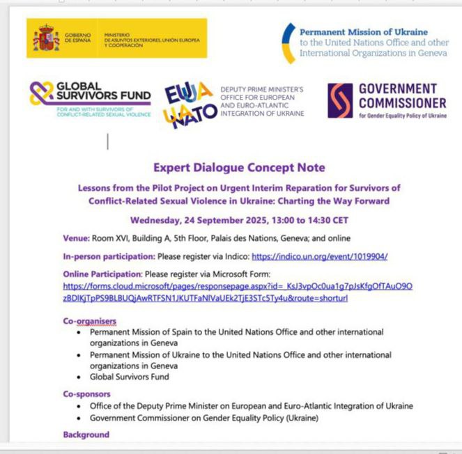 - Сприяти сталому усуненню всіх форм сексуального та гендерного насильства через обговорення таких механізмів, як фінансування відшкодувань за рахунок перепрофілювання активів, включаючи надзвичайні позики для забезпечення швидкого поповнення бюджету України.