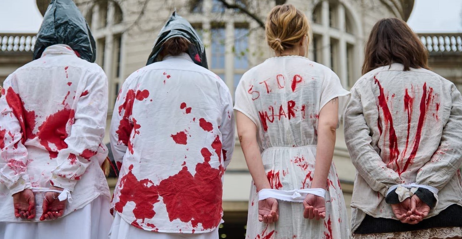 Українці протестують у Берліні проти зґвалтувань із боку російських солдатів. За оцінками Глобального фонду тих, хто вижив, тисячі українців постраждали від сексуального насильства під час війни. Фотографія: Ф. Бойо/Рекс.
