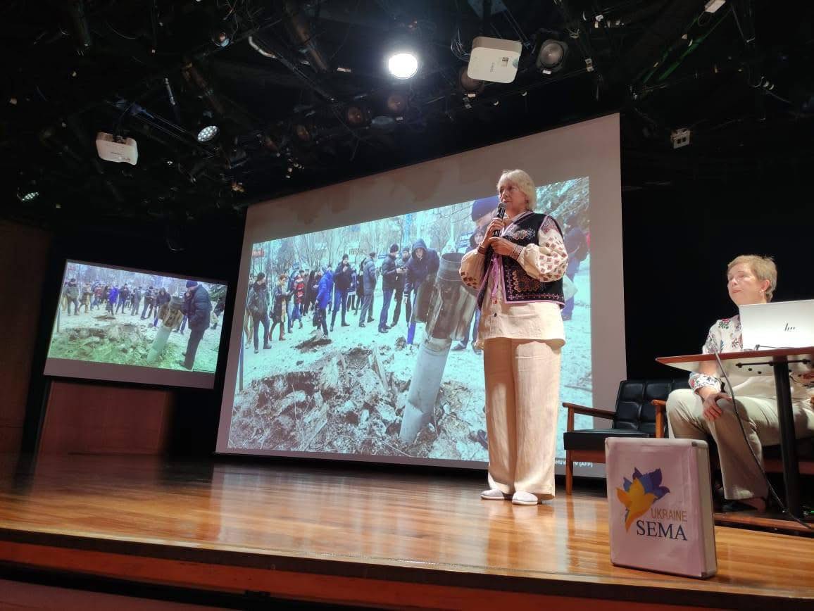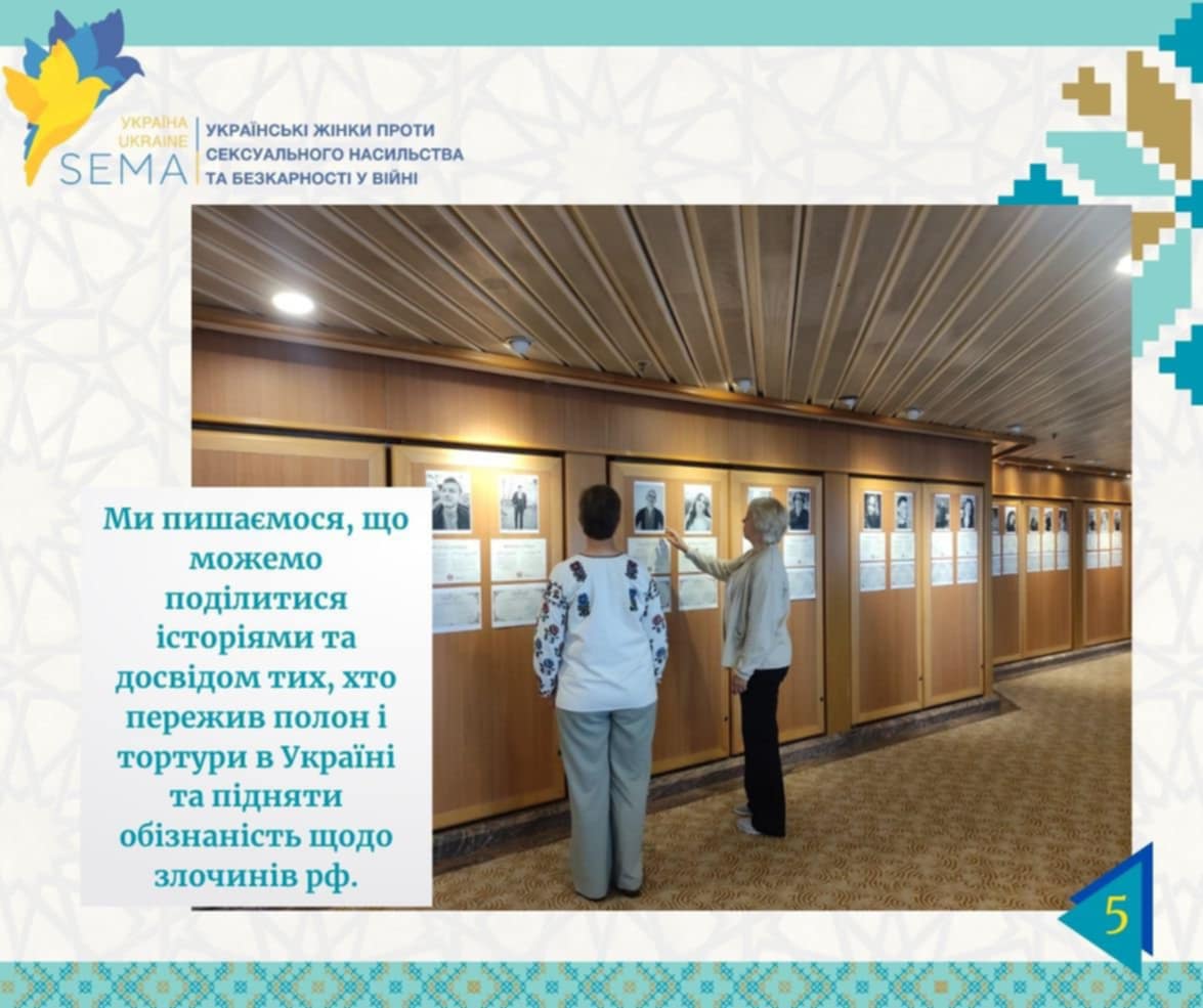 Українки Ірина Довгань, Ольга Тараненко та Галина Тищенко як представниці СЕМА Україна , які представляють голоси українських жінок, що постраждали від злочинів війни росії проти України, перебували на борту ЧОВНА МИРУ з важливою місією. Вони мали честь розказати величезній аудиторії про війну в Україні, підняти рівень міжнародної адвокації щодо засудження російської агресії та її численних воєнних злочинів, серед яких і використання сексуального насильства як зброї війни.