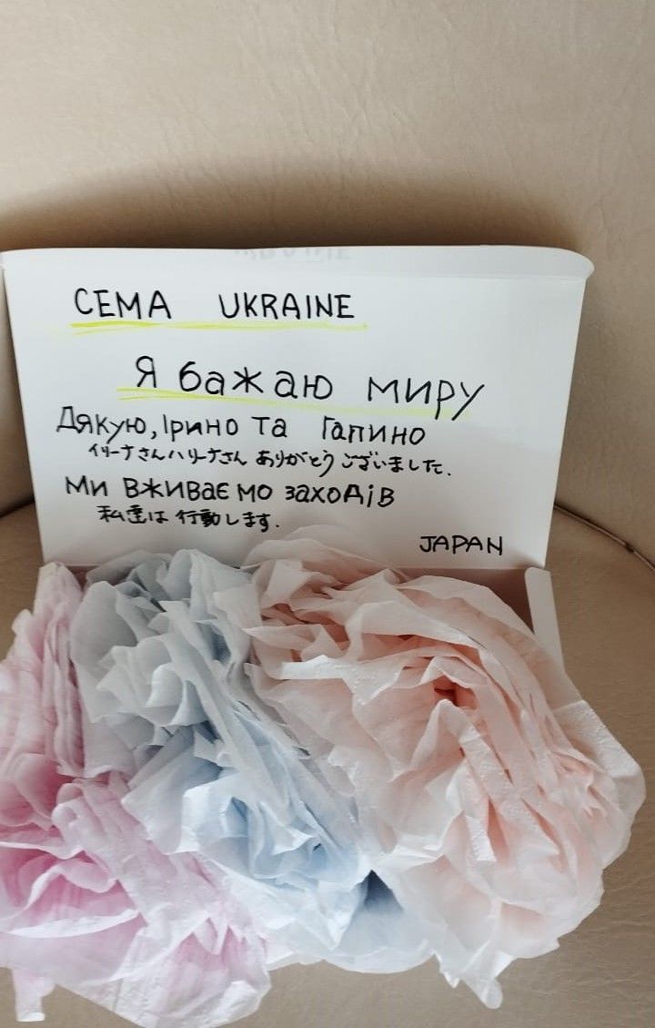 Тому меседж від української групи був сформульований так: "Ваша підтримка для нас цінна, але вона не повинна залишатися лише на рівні співчуття. Якщо ви справді з Україною — впливайте на свої уряди. Говоріть про це вдома, піднімайте тему публічно, вимагайте рішень. Мовчазна солідарність не зупиняє війну".. Ми навіть отримали маленький доказ того, що нас почули і зрозуміли – всі ті — журавлики, троянди та маленькі листівки, які люди дарували нам на прощання". По поверненню отримали перший відгук по роботі на Човні Миру від Суміко, далекої організаторки з Токіо. Ми готувалися з нею по zoom ще до поїздки,"- Ірина Довгань.