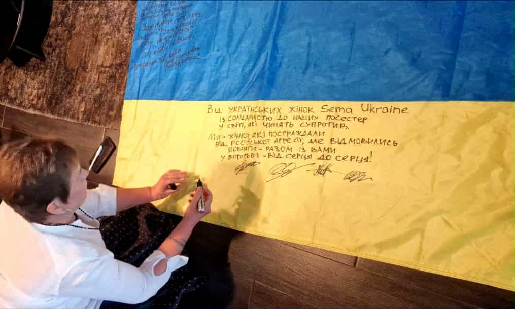Національний прапор України — символ волі та гідності — став важливою частиною цієї зустрічі. На ньому українські жінки залишили звернення до жінок усього світу, заклик до солідарності, підтримки та демонстрації неймовірної сили перед викликами війни. Цей прапор посідатиме почесне місце в Меморіалі військовим жінкам, у спеціально створеному просторі, присвяченому Україні. Він слугуватиме не лише знаком пам’яті та вдячності, але й важливим свідченням того, що голос українських жінок знаходить відгук далеко за межами Батьківщини. Прапор нестиме світу послання правди, мужності та надії на справедливість у часи важких випробувань.
